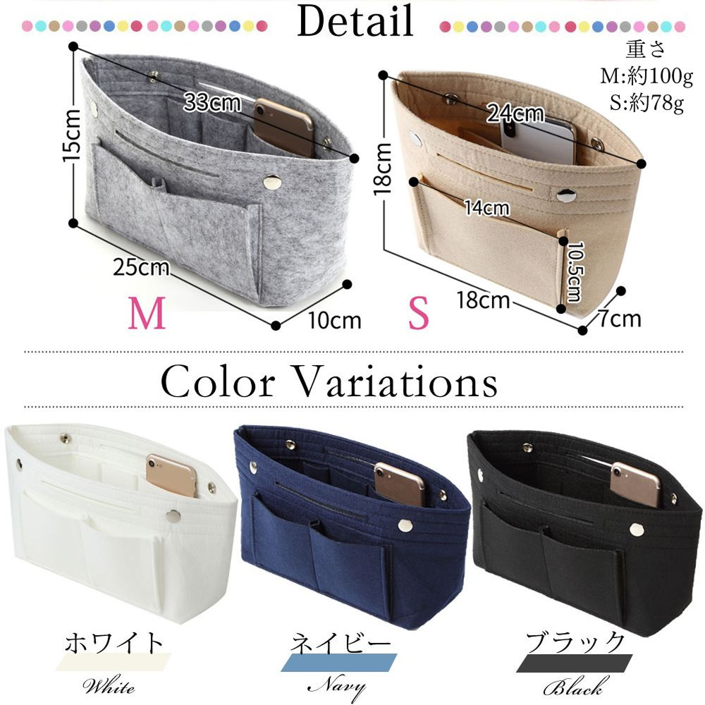 フェルトの優しさと、驚きの収納力を兼ね備えたバッグインバッグは、あなたの毎日をサポートする心強いパートナーになります。