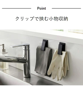 ゴム手袋、布巾、洗顔料のチューブ。これらが水回りの台に直置きされていると、底がヌメり、掃除のたびにストレスを感じます。towerのクリップは、その強力な磁力でこれらの「柔らかい物」をしっかりと保持し、壁面に浮かせます。